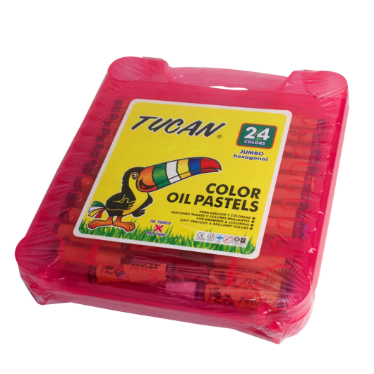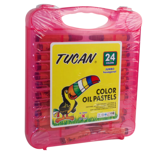24 crayones pastel que incluyen caja plástica.