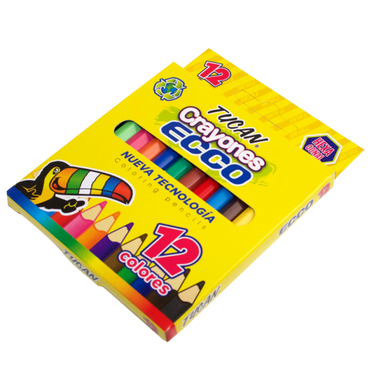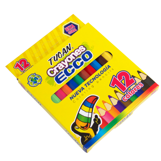 Crayón hexagonal que incluye 12 colores diferentes, compactos e ideales para llevarlos a cualquier lugar a pintar.