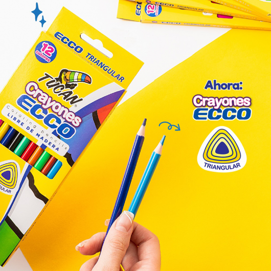 Crayon Ecco Triangular Libre de Madera Largo 12 colores
