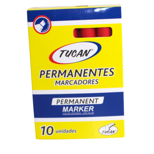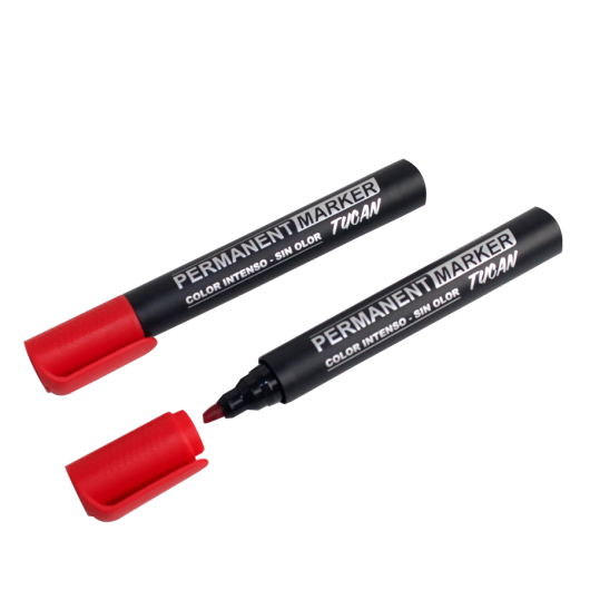 3 colores diferentes en marcadores permanentes, Negro, azul y rojo, con punta biselada.