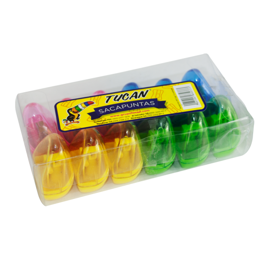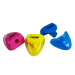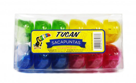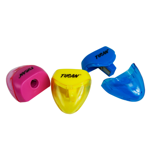 Sacapuntas Diamante de plástico, en 4 colores diferentes rojo, amarillos, verde y azul, cuenta con una tapadera para guardar los restos de basura cuando lo usas