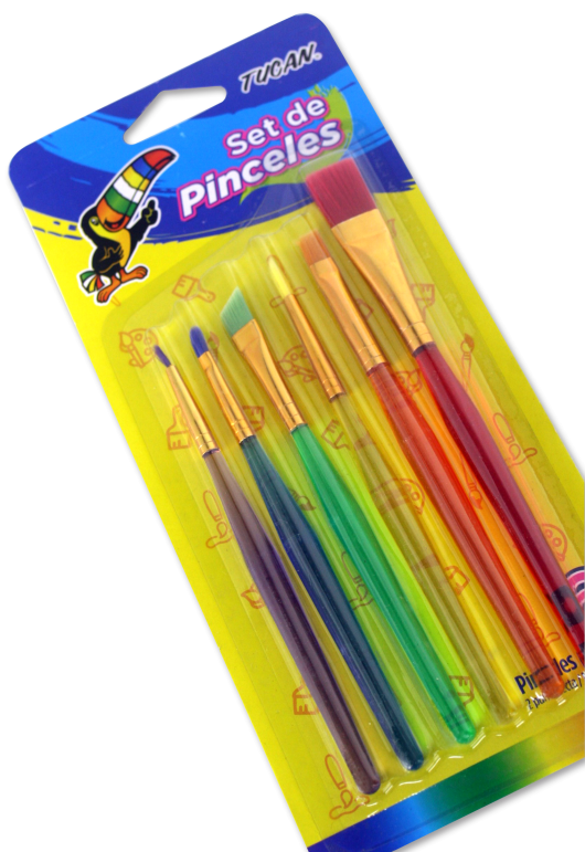 Paquete de 6 unidades con mango plástico, diferentes colores y formas. Filamentos sintéticos de Taklon.