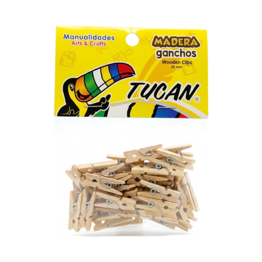 Ganchos de madera de 25 mm cada uno, disponibles en 2 presentaciones diferentes, color natural y de varios colores.