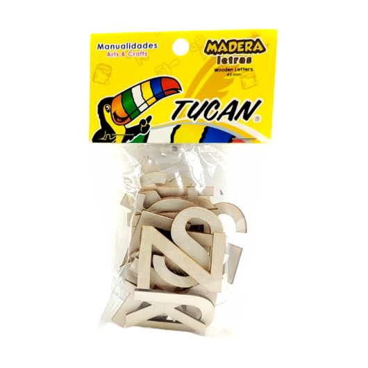 Letras medianas de madera con medida de 45 mm, cada bolsa incluye 26 unidades
