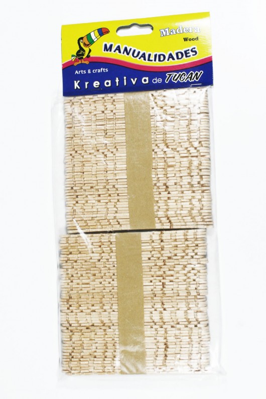 Paletas de madera armable, bolsa incluye 100 unidades y viene en 2 presentaciones diferentes, color natural y colores varios. Medida de 11.4 x 0.9 cms ideal para armar lo que puedas imaginar